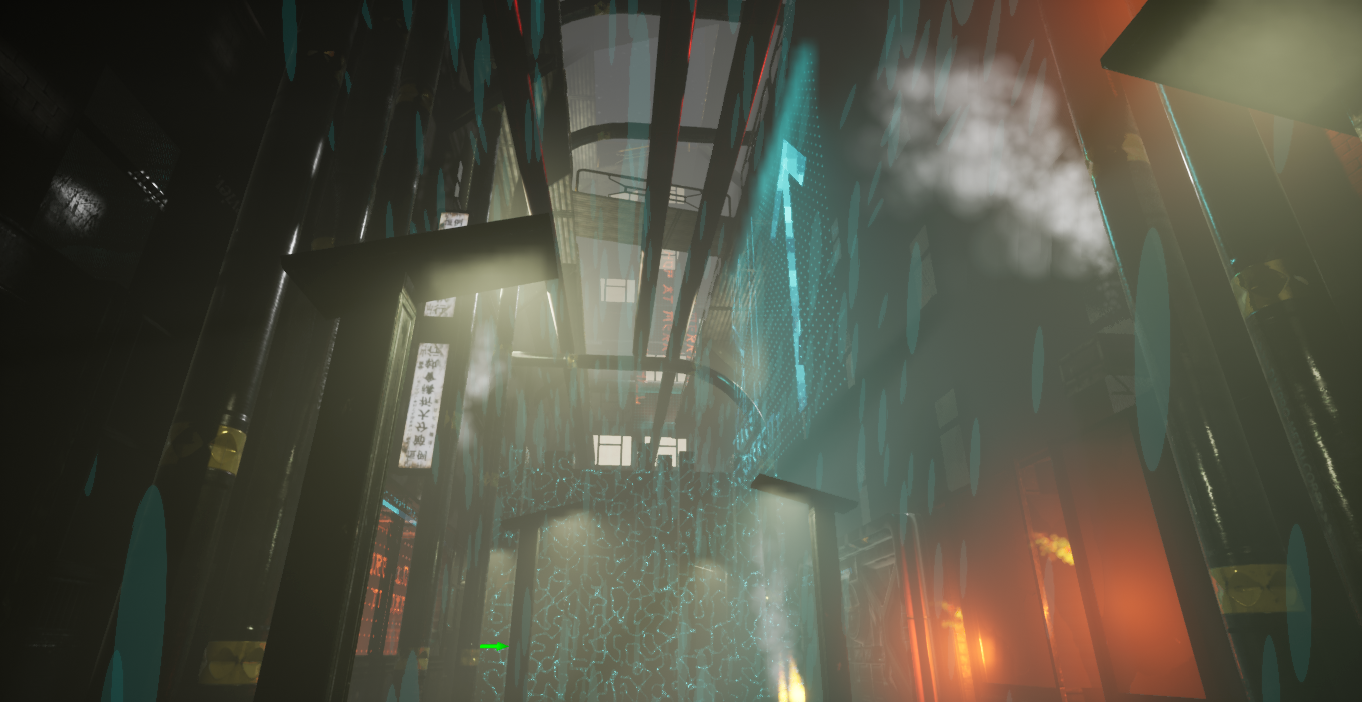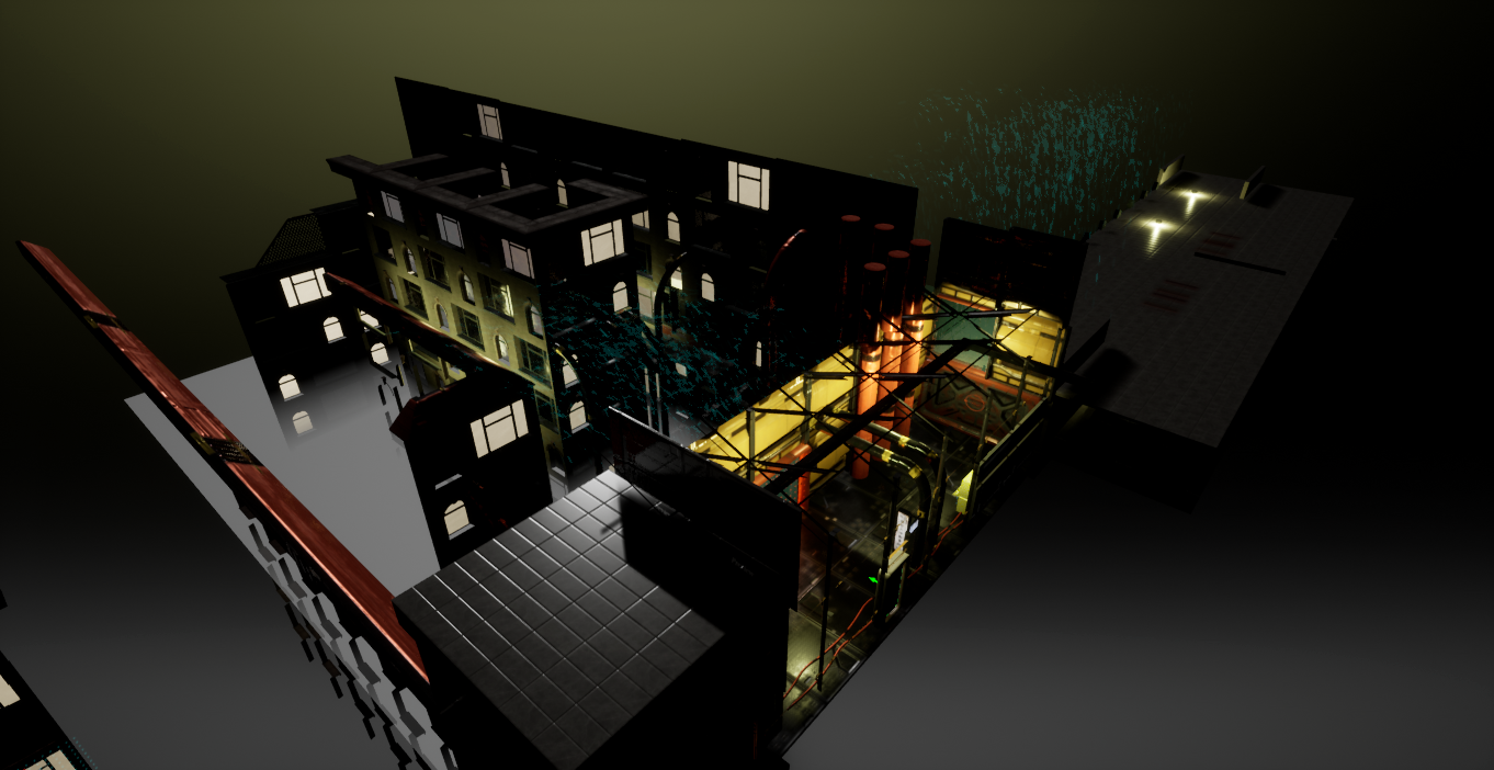 I made it so that the level looks like it was once very dense with people by making all the buildings at the start huge flats and then I added catwalks to help make it seem like the place was once very busy with many people once going many places one many cat walks.